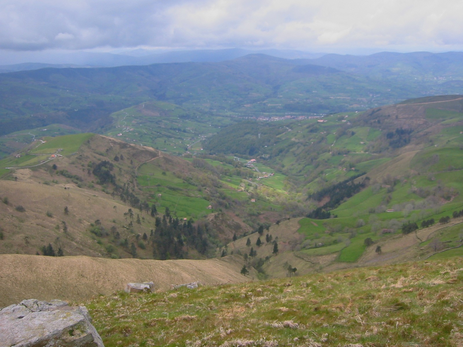 Atrás va quedando la parte boscosa y por delante tenemos toda la zona desforestada que durante años ha servido de pasto de las vacas de raza pasiega hoy casi por completo desaparecida aunque se está tratando a base de subvenciones su recuperación.